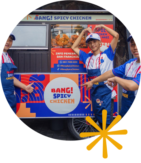 Gabung bersama kami dan nikmati berbagai keuntungan, mulai dari gerobak BANG! Spicy Chicken, peralatan lengkap, seragam, hingga dukungan pemasaran, bahan baku, dan pelatihan
